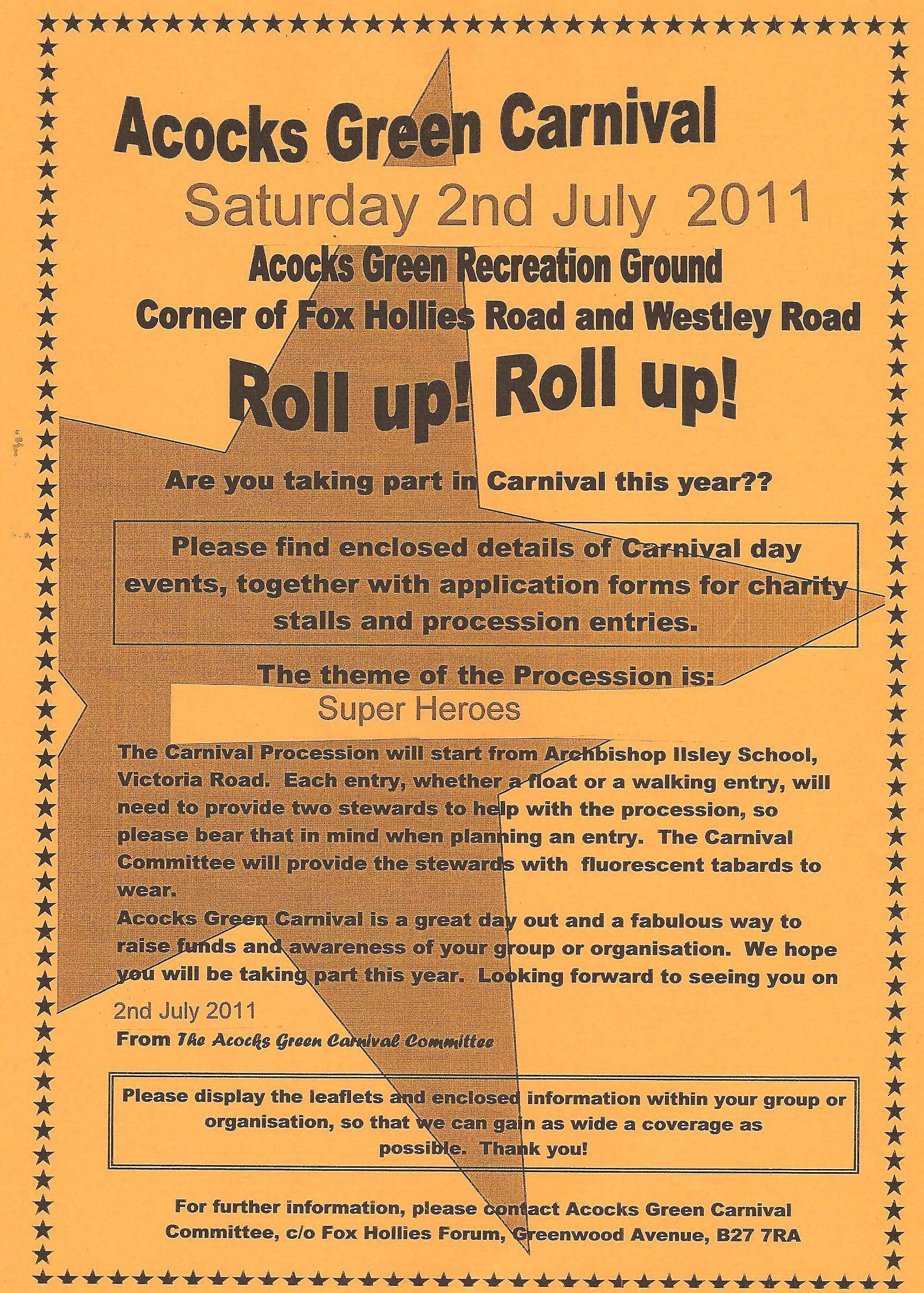 Acocks Green Carnival 2nd July – All the Info!
