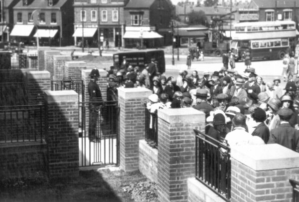Local bobbies controlling the eager crowds.