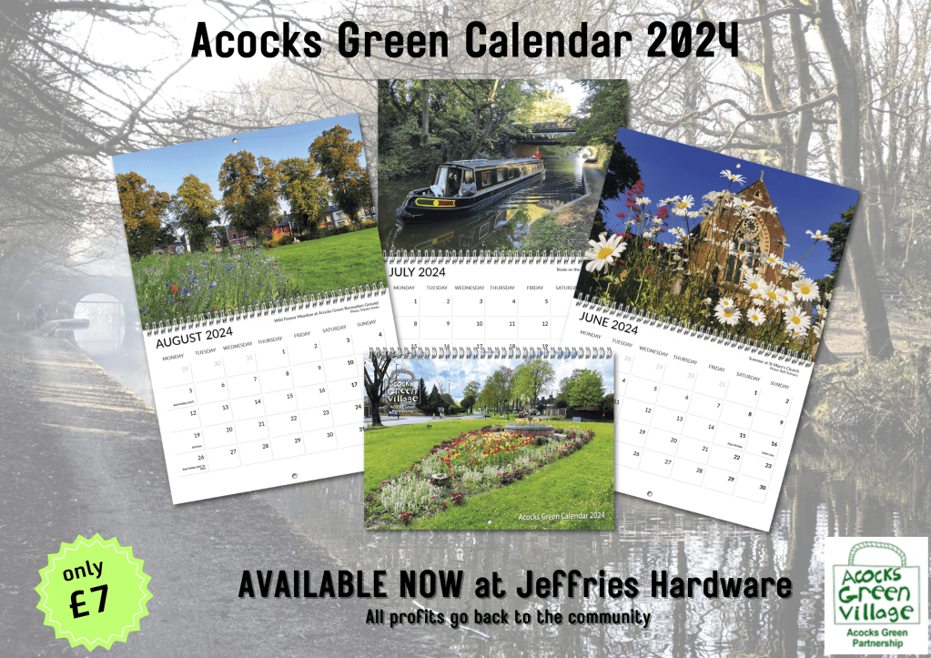 All photos are taken by local people who have captured Acocks Green through the seasons for this lovely and useful calendar to hang on your wall. All money raised goes back to the community.