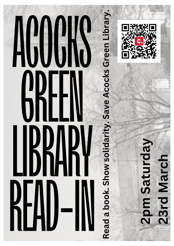 A local resident has set up a campaign to ask people to show their support for library services and to highlight that they offer vital services to the community. All you have to do is go to the library this Saturday at 2pm and read a book. Also on the above poster is a link to the petition to Save Acocks Green Library or click on the link below: https://www.change.org/p/save-acocks-green-library