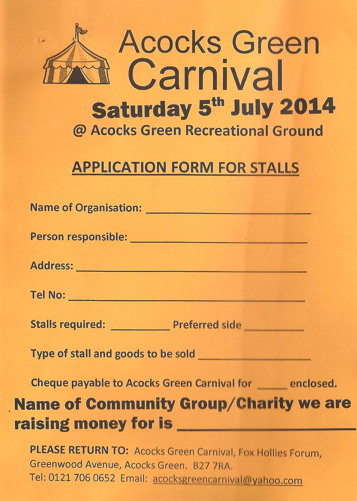 Application form for stallholders