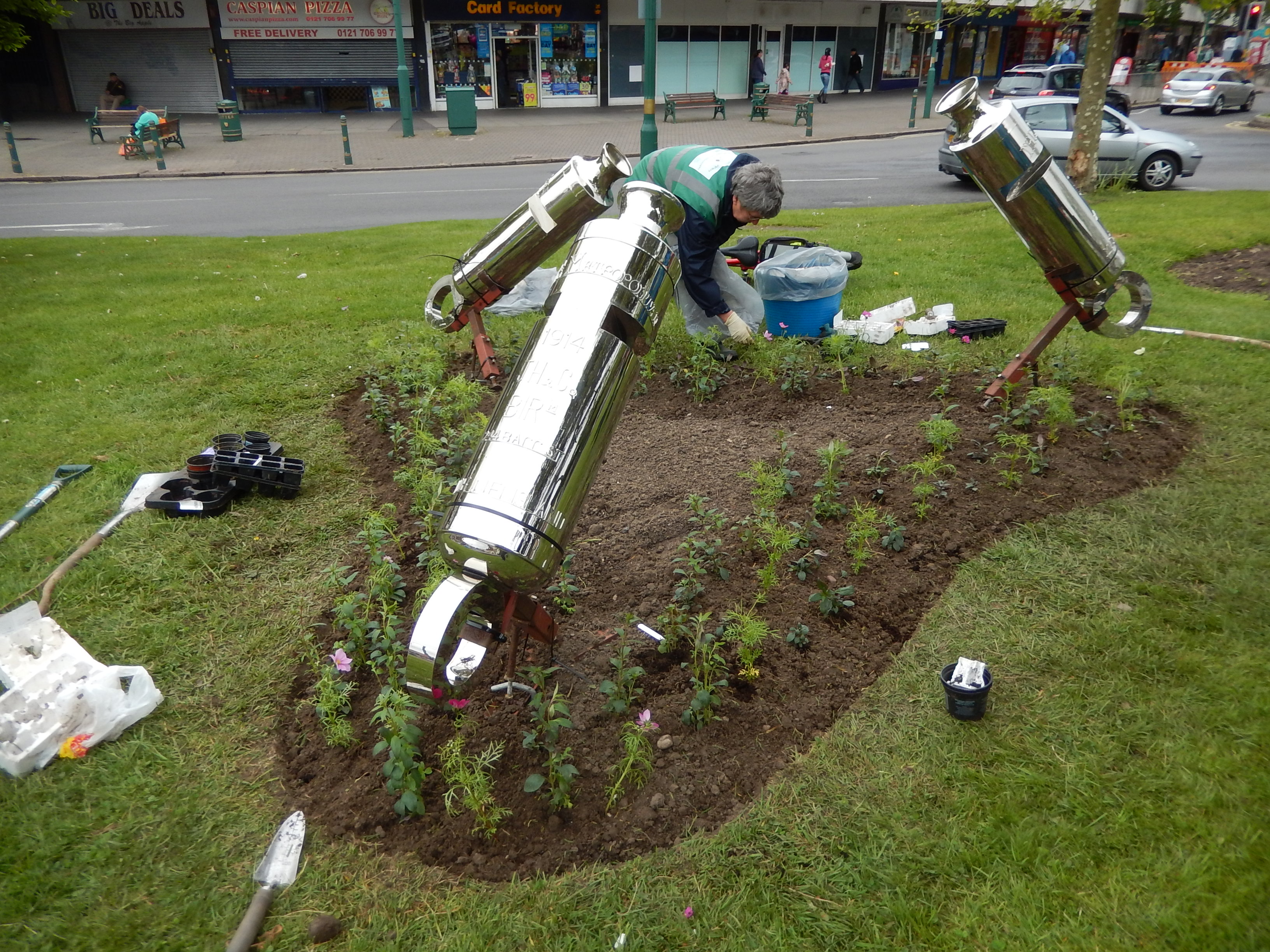 Planting a bed of colourful cosmos daisies and snapdragons