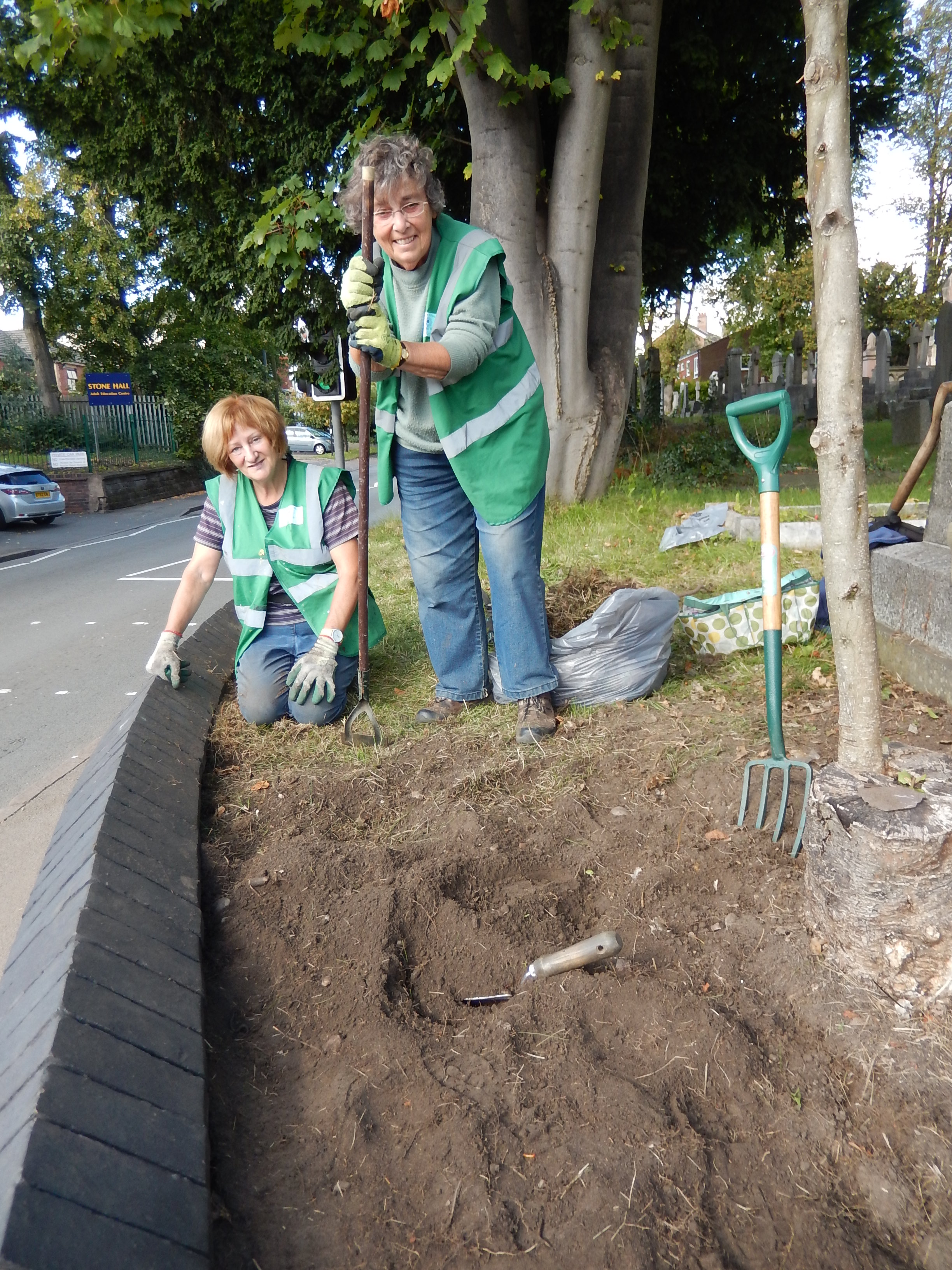 Ann and Fran preparing the first bed