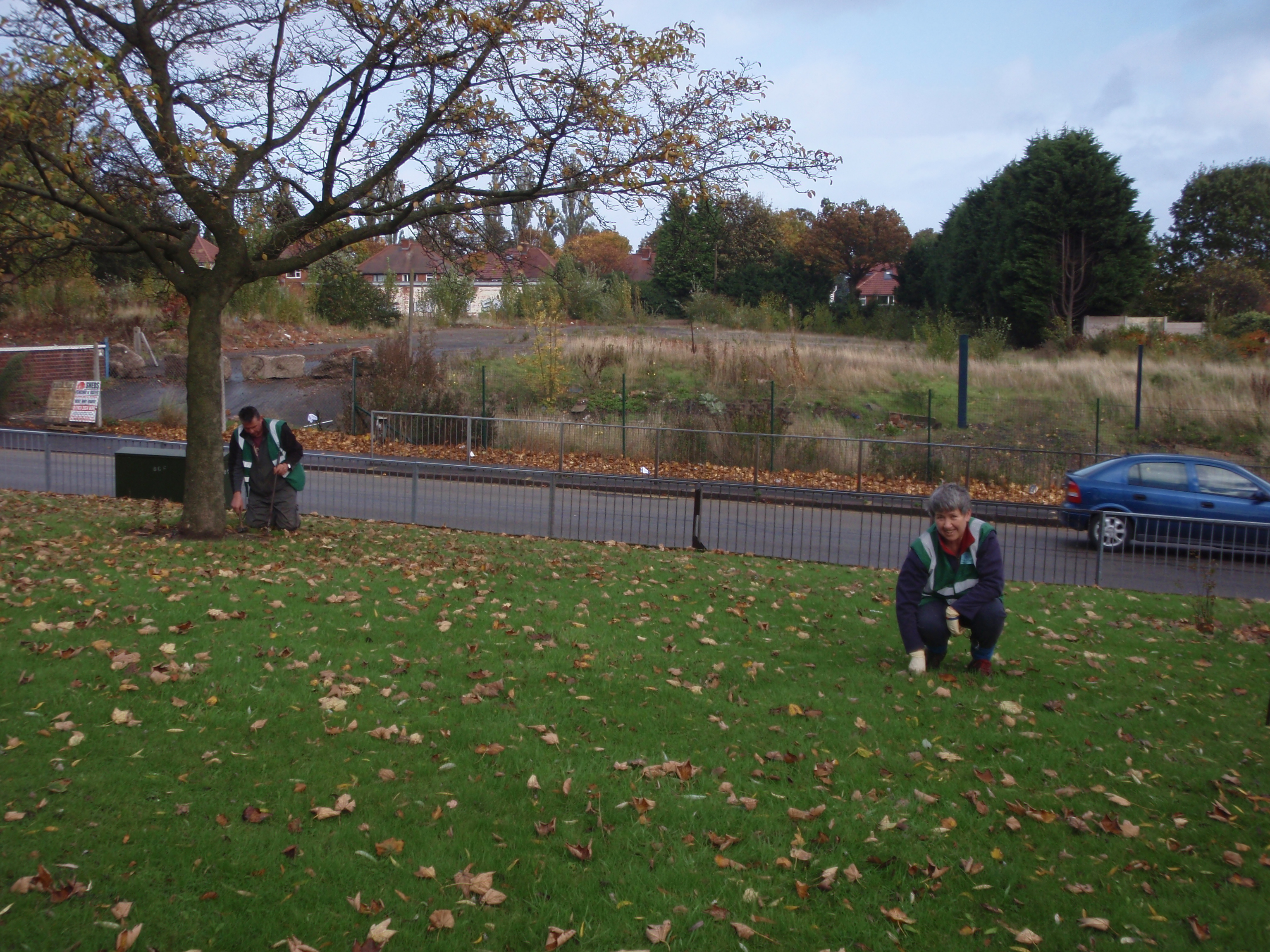 bulbs being planted on Warwick Road island