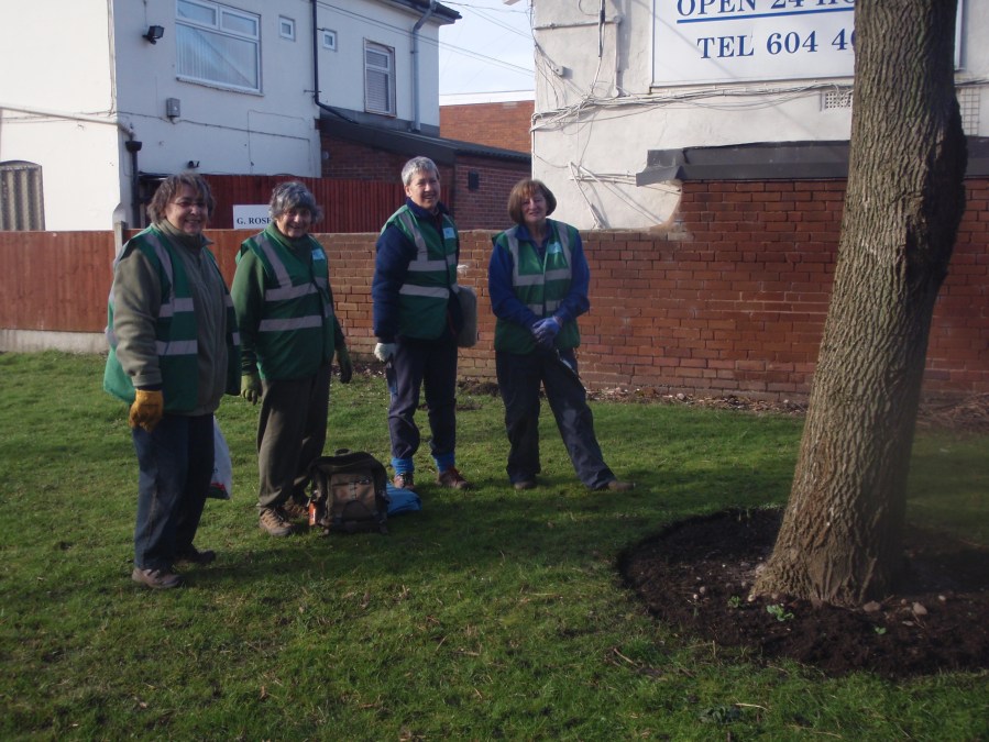 Some of the team on Woodcock Lane. Look out for the bulbs flowering here soon.