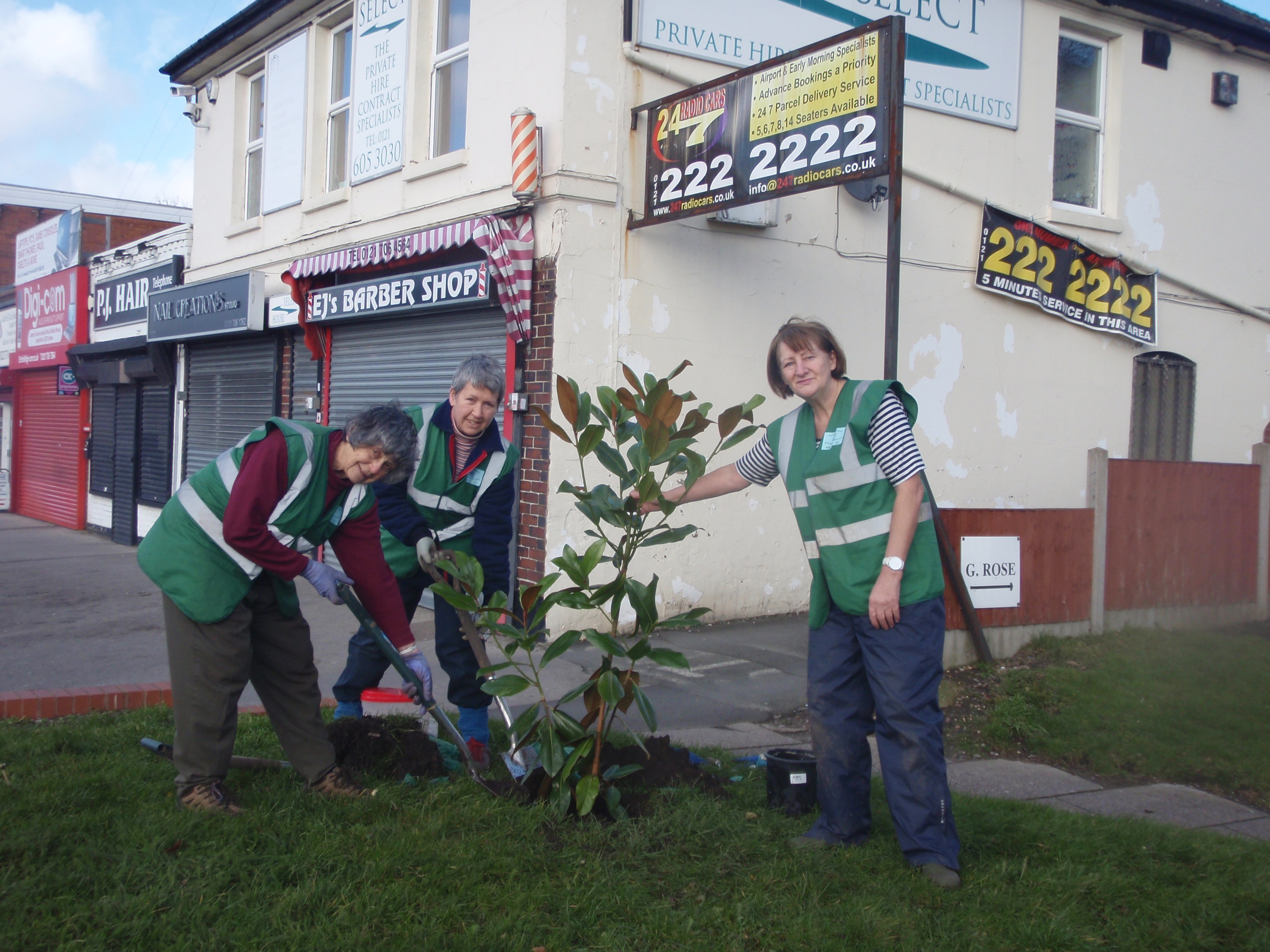 Planting an evergreen Magnolia on the corner of Woodcock Lane.