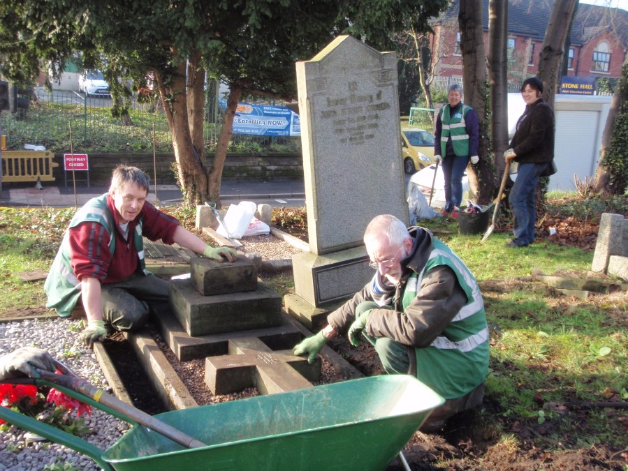 Men at Work. Mick and George working hard tidying gravestones
