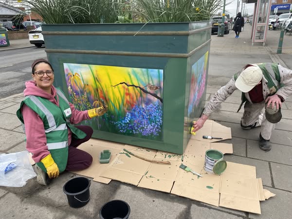 Dina and George brightening up the planters
