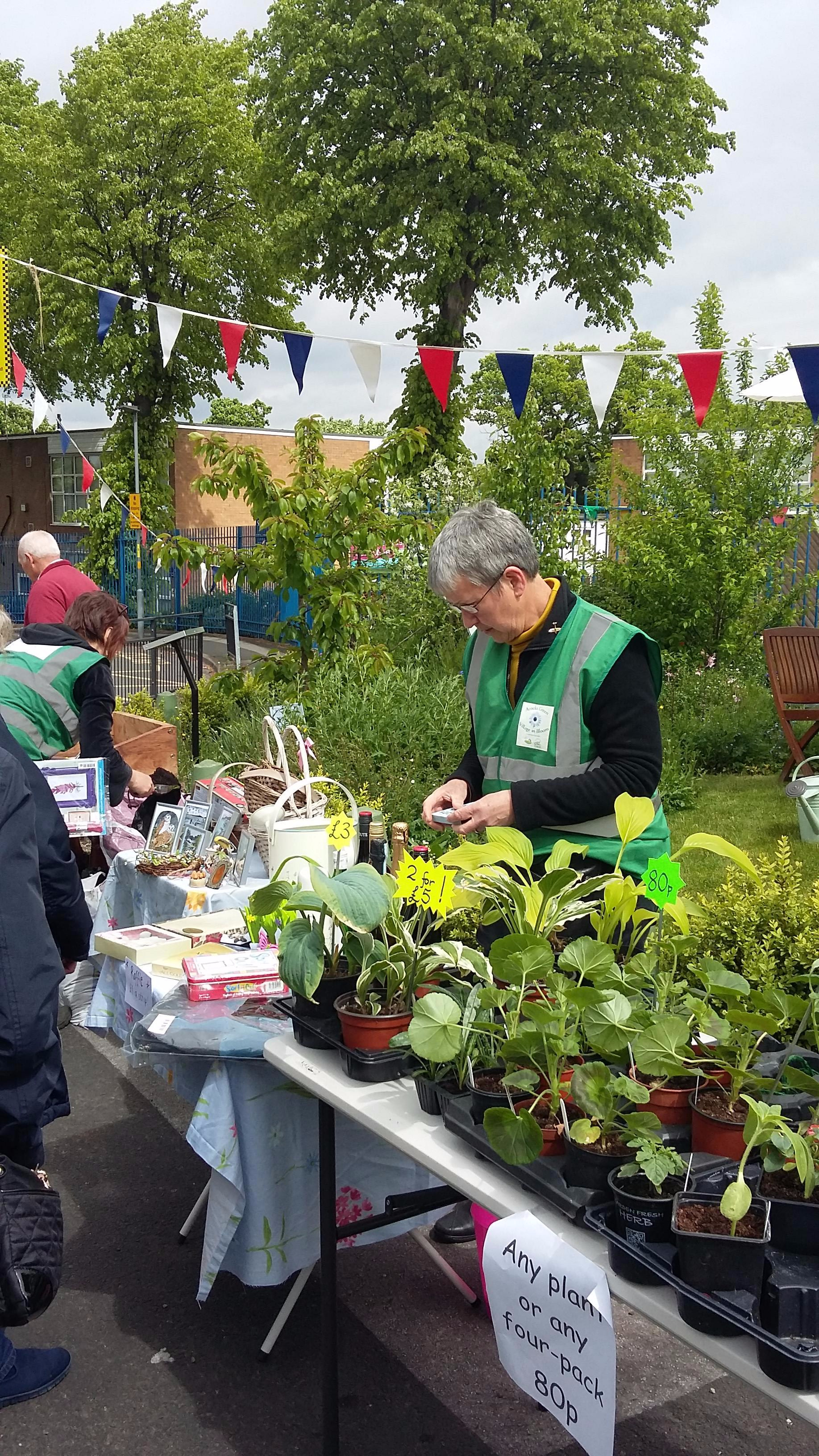 ViB Sculpture Designer – Veronica Treadwell, looking after the Raffle. Also selection of plants from Arden Residents Association